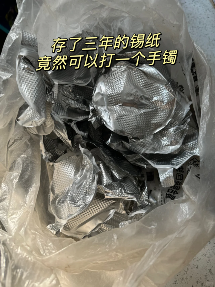 如果大家家里面也有足够数量的密封铝膜纸,不妨选择将其打造成一个有纪念意义的镯子。