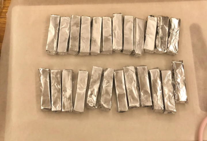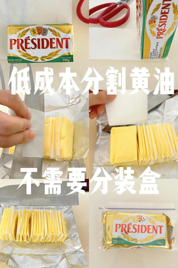 大家只需要提前按餐将黄油或者是奶酪切好,然后使用洗干净并晾干的铝膜纸包好后,